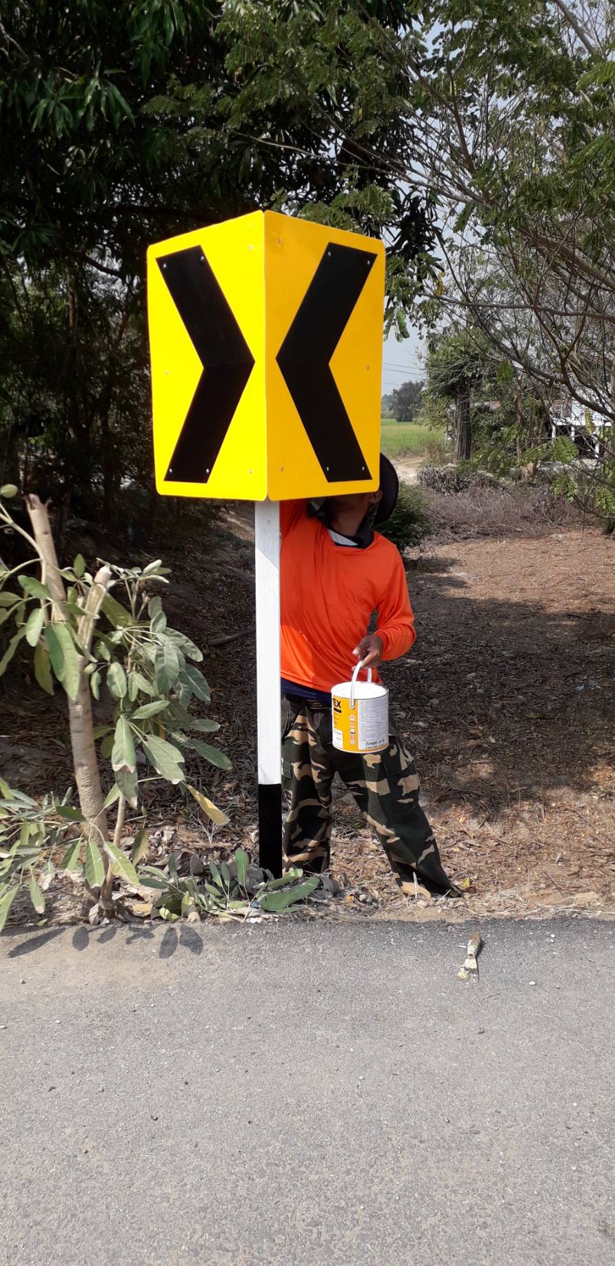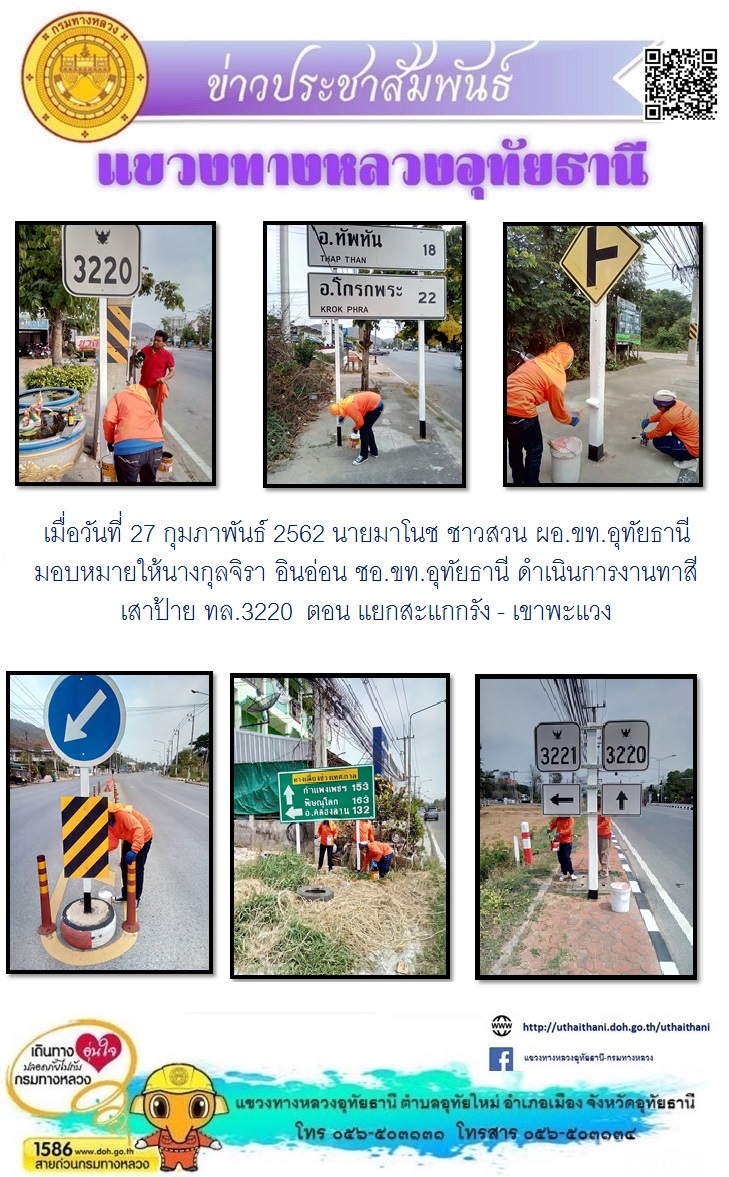 ทาสีเสาป้าย ทล.3220 ตอน แยกสะแกกรัง - เขาพะแวง