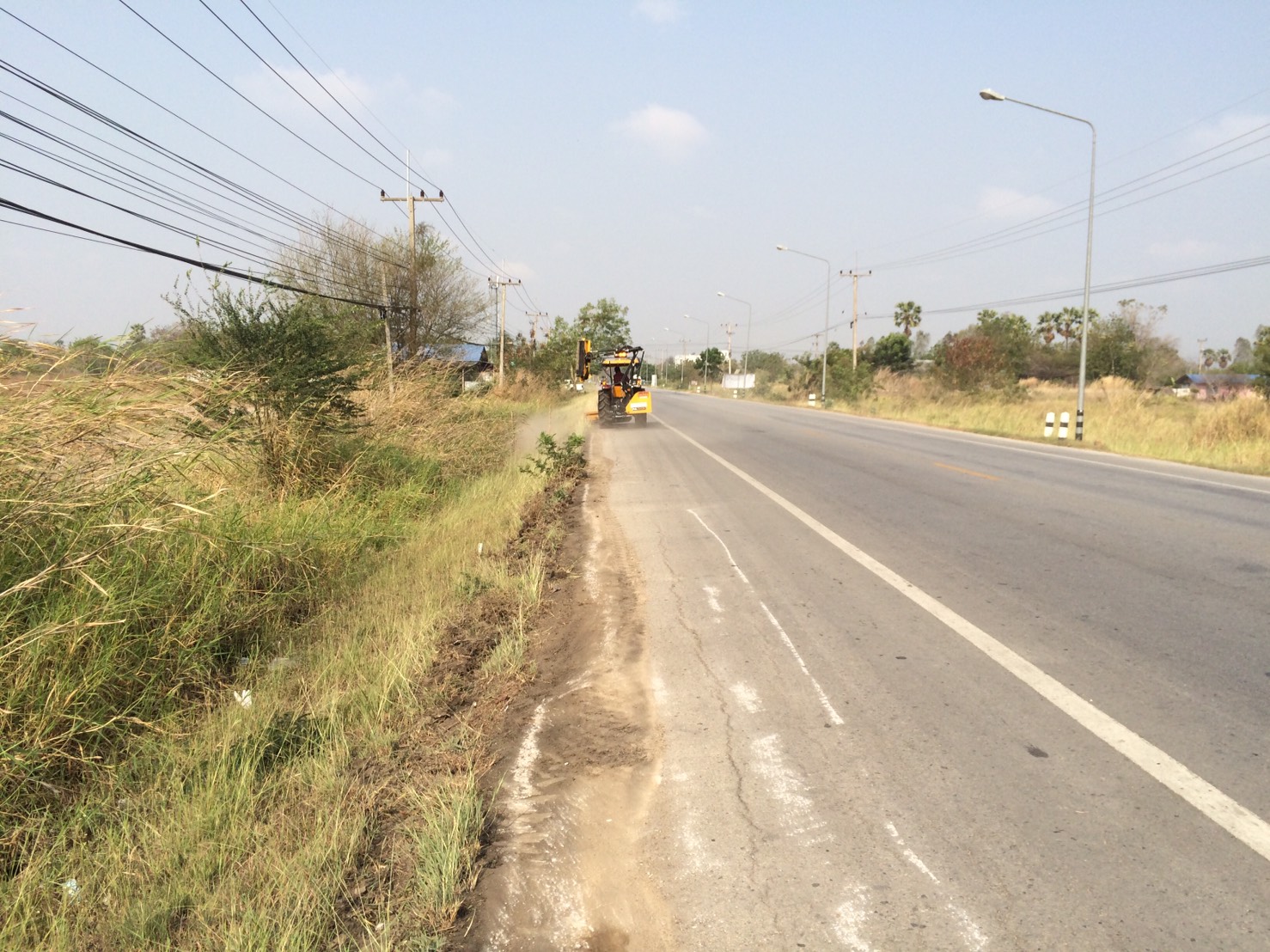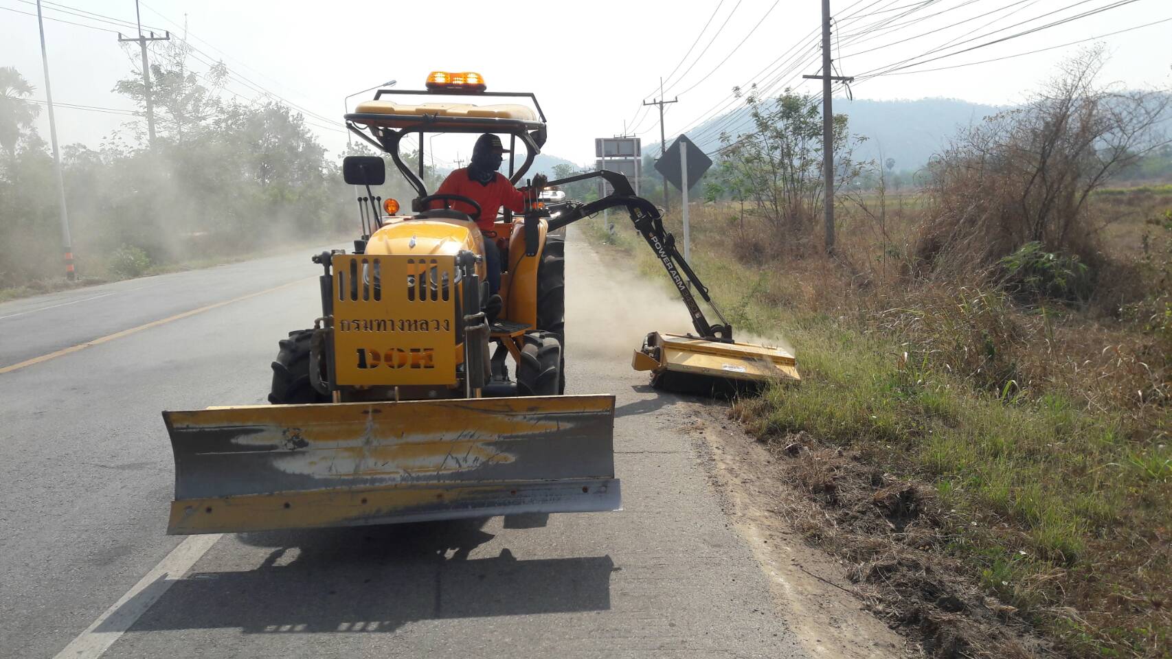 นำรถฟาร์มแทรคเตอร์ติดเครื่องตัดหญ้าบริเวณขอบไหล่ทาง ทางหลวงหมายเลข 3221 ตอน อุทัยธานี - ทัพทัน ระหว่าง กม.1+300 - 15+303 LT./RT.