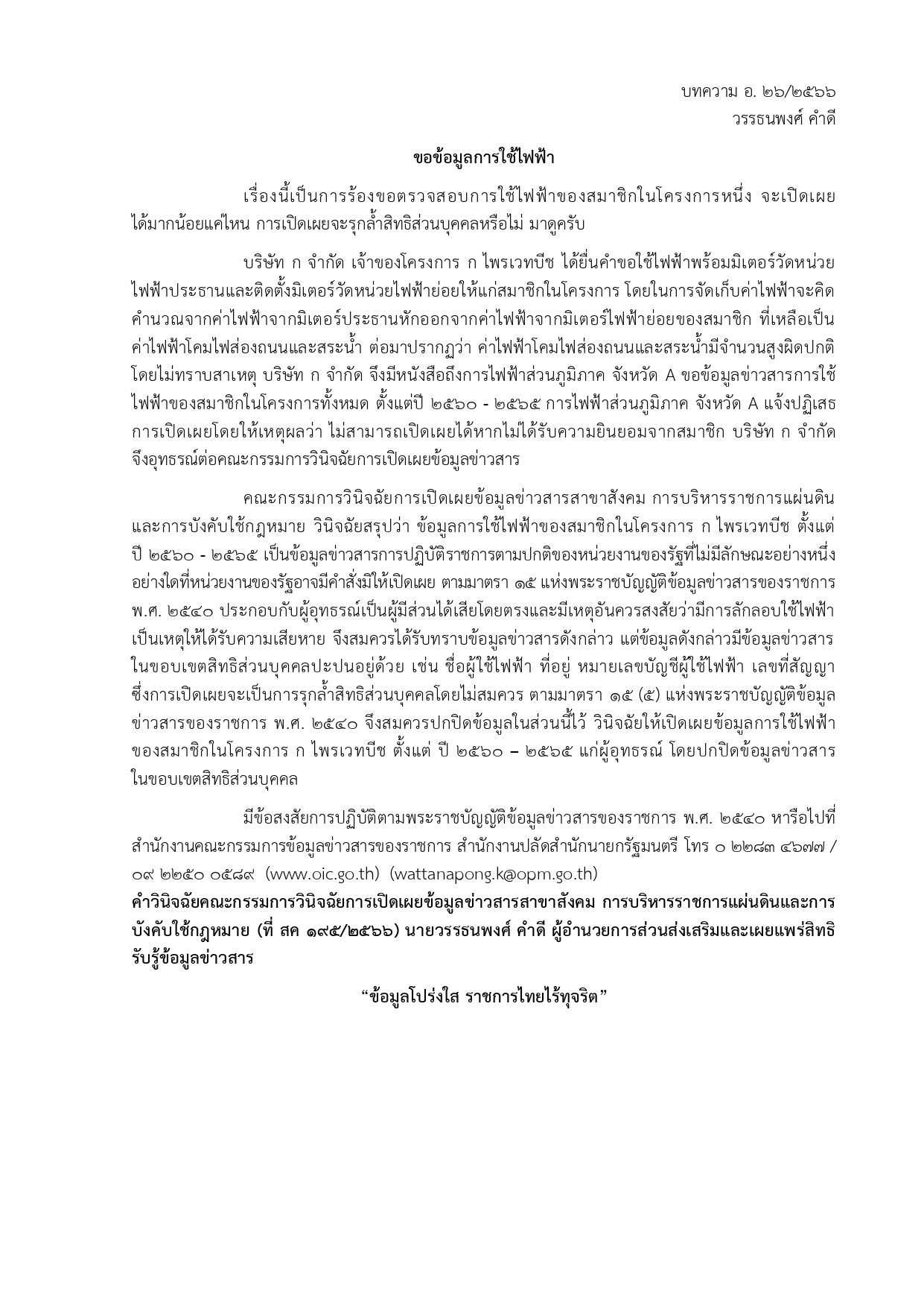 เอกสารเผยแพร่ความรู้เกี่ยวกับพระราชบัญญัติข้อมูลข่าวสารของราชการ พ.ศ. 2540