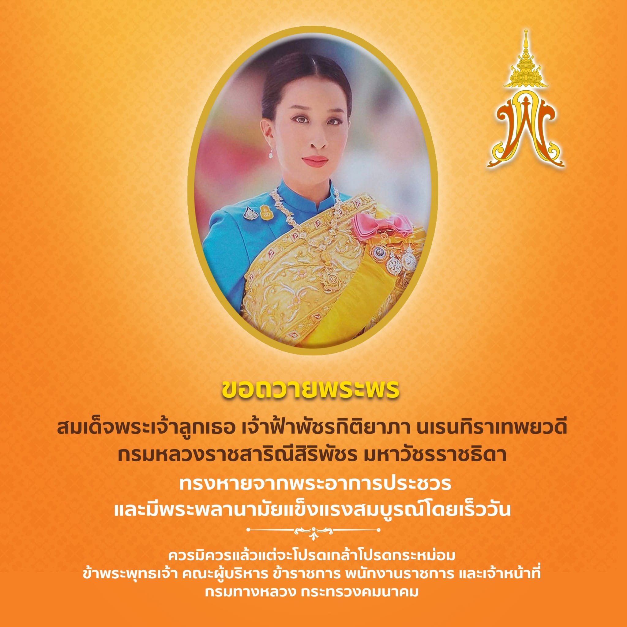 ขอเชิญร่วมลงนามถวายพระพร สมเด็จพระเจ้าลูกเธอ เจ้าฟ้าพัชรกิติยาภา ฯ ทรงหายจากพระอาการประชวร