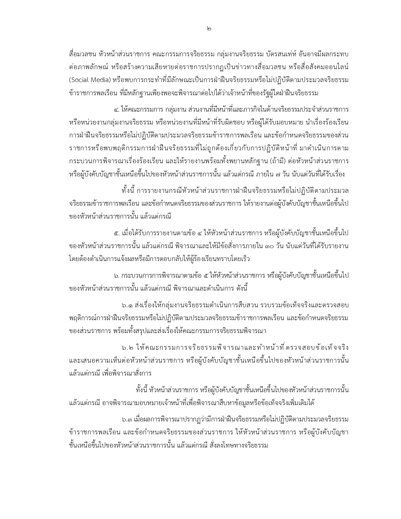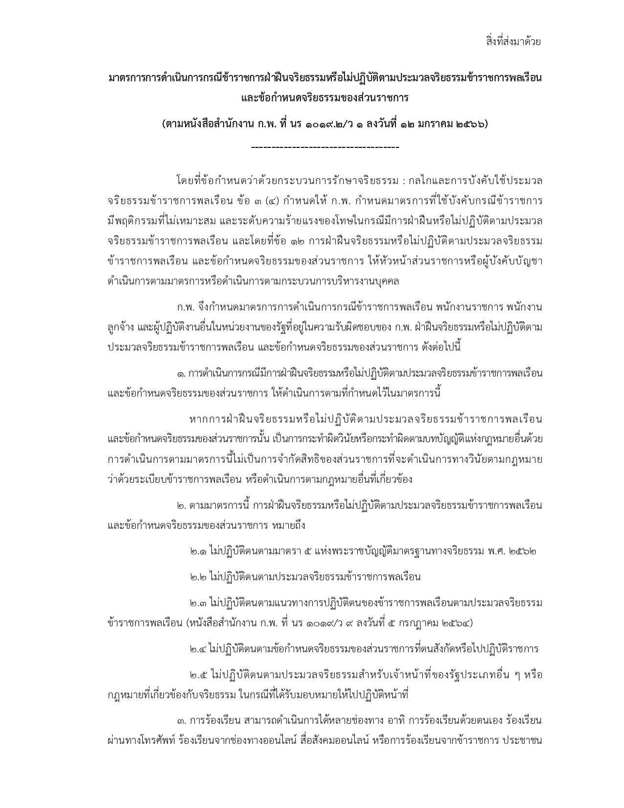 การดำเนินการกรณีข้าราชการฝ้าฝืนจริยธรรมหรือไม่ปฏิบัติตามประมวลจริยธรรมข้าราชการพลเรือน และข้อกำหนดจริยธรรมของส่วนราซการ