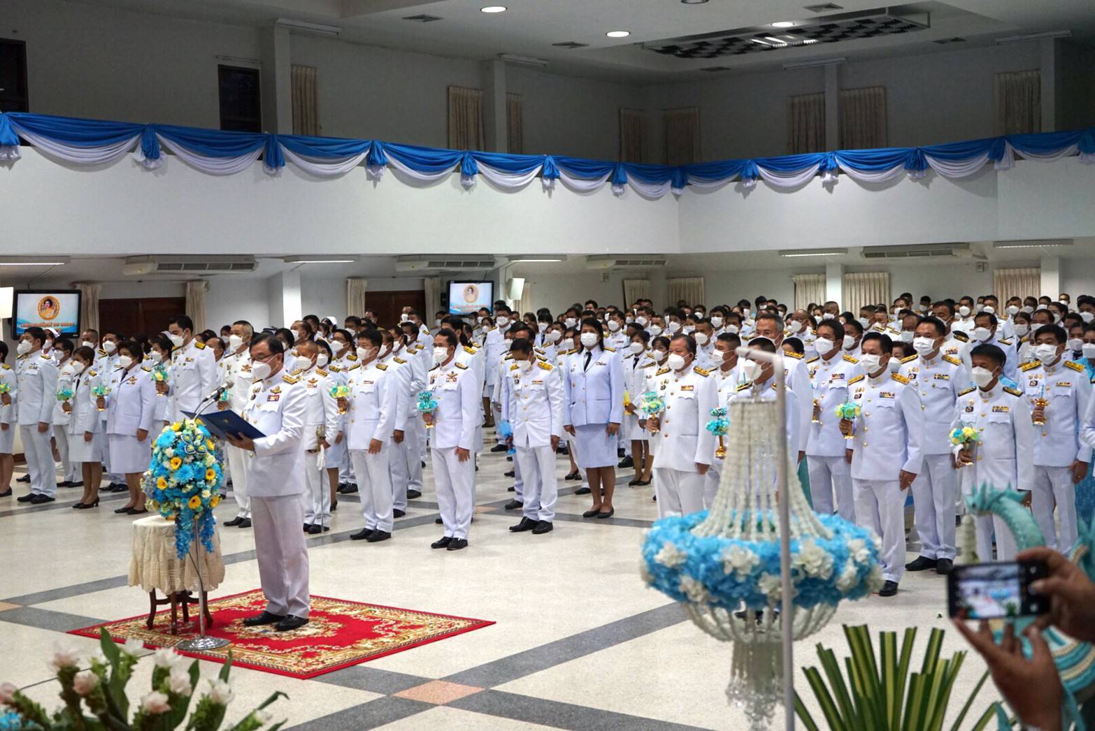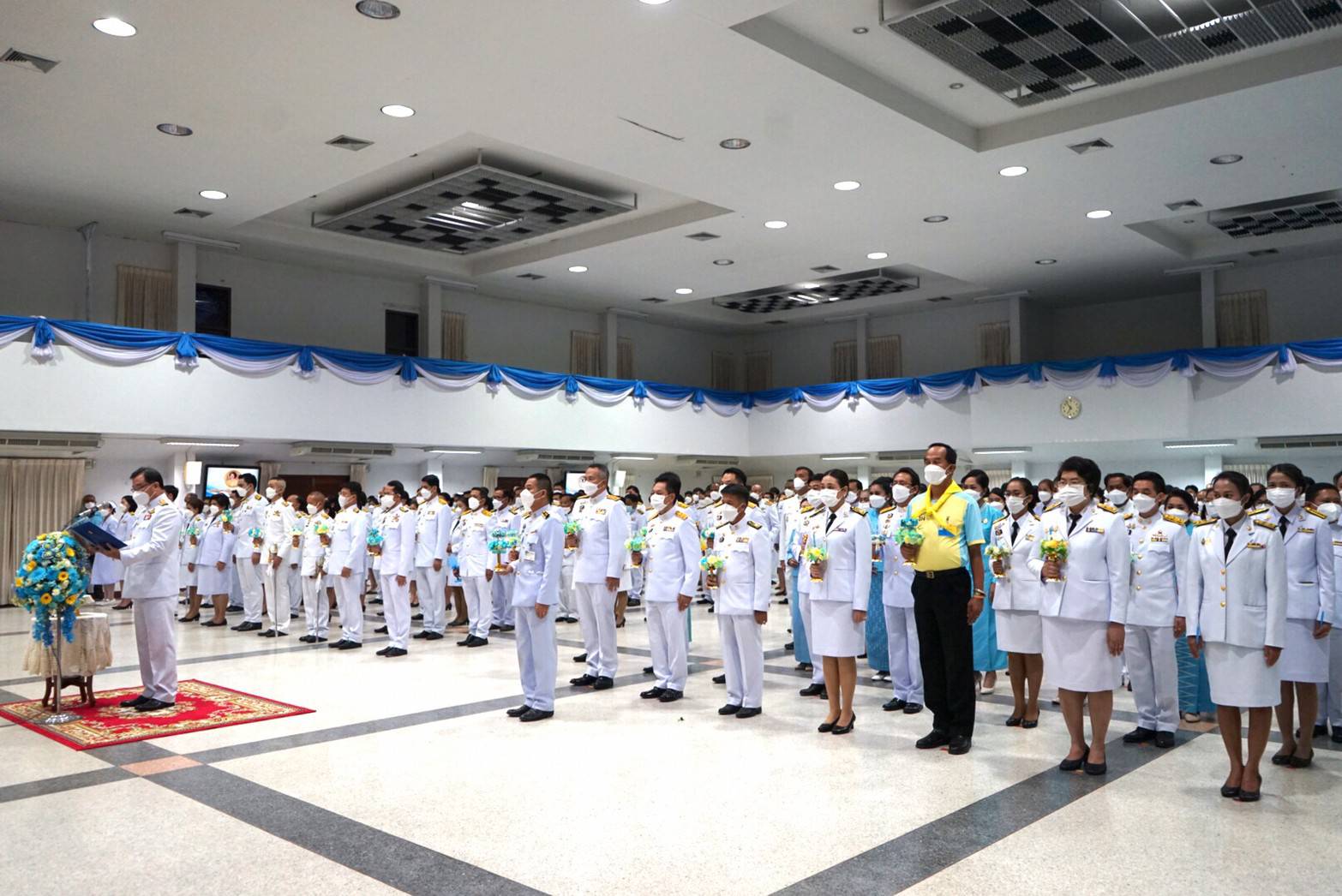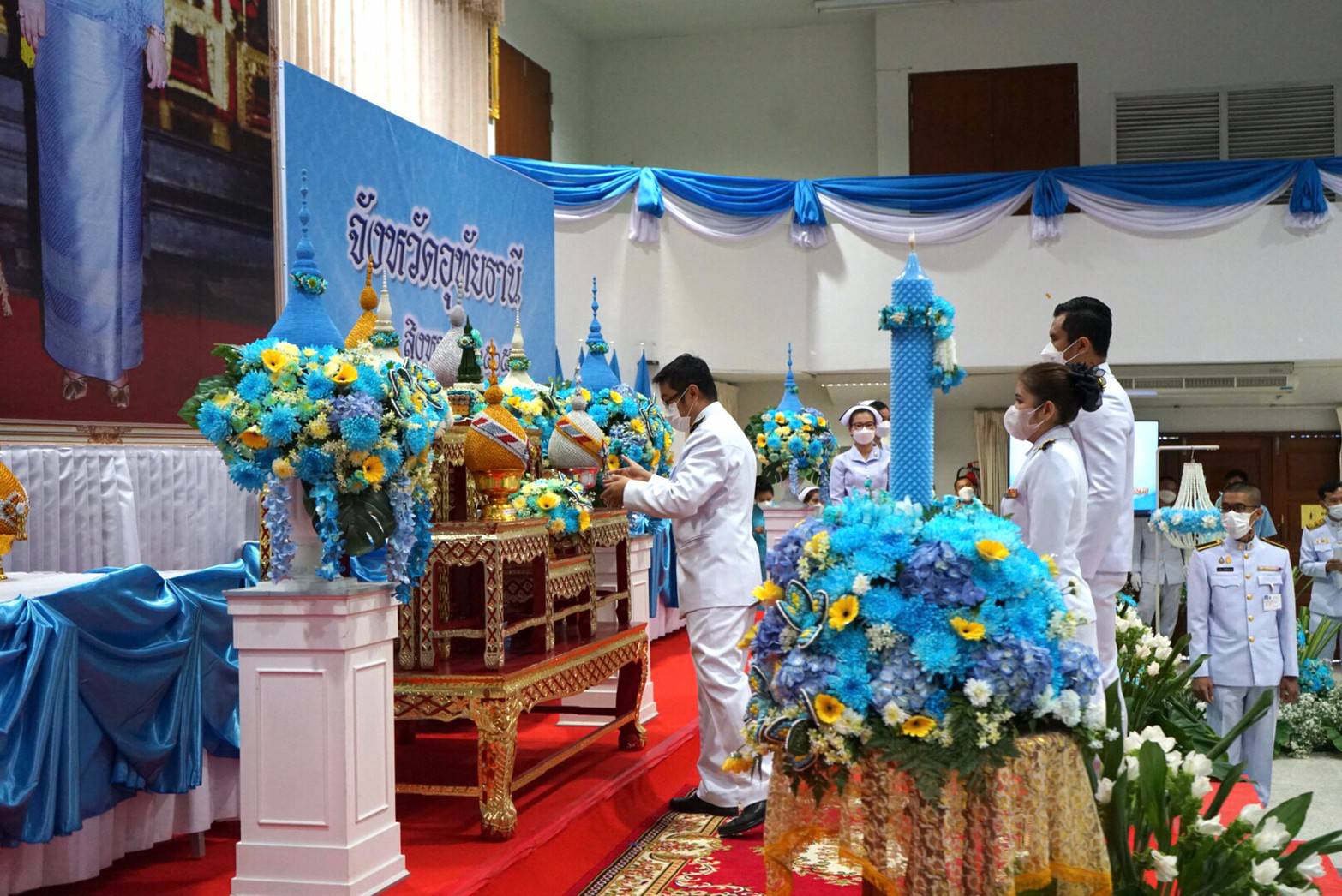 และในช่วงค่ำ ได้ร่วมพิธีถวายเครื่องราชสักการะและวางพานพุ่ม และพิธีจุดเทียนถวายพระพรชัยมงคล ณ ห้องประชุมอาคารชั้น 2