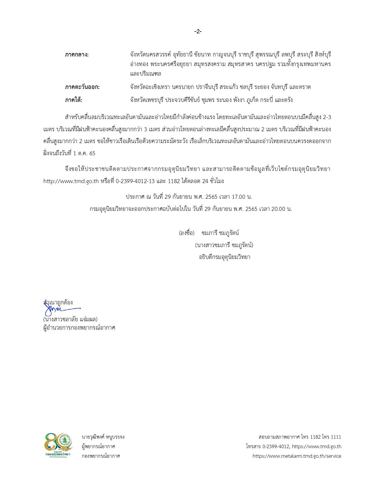 ข้อมูลภาพกิจกรรม : ประกาศกรมอุตุนิยมวิทยา เรื่อง พายุ "โนรู"