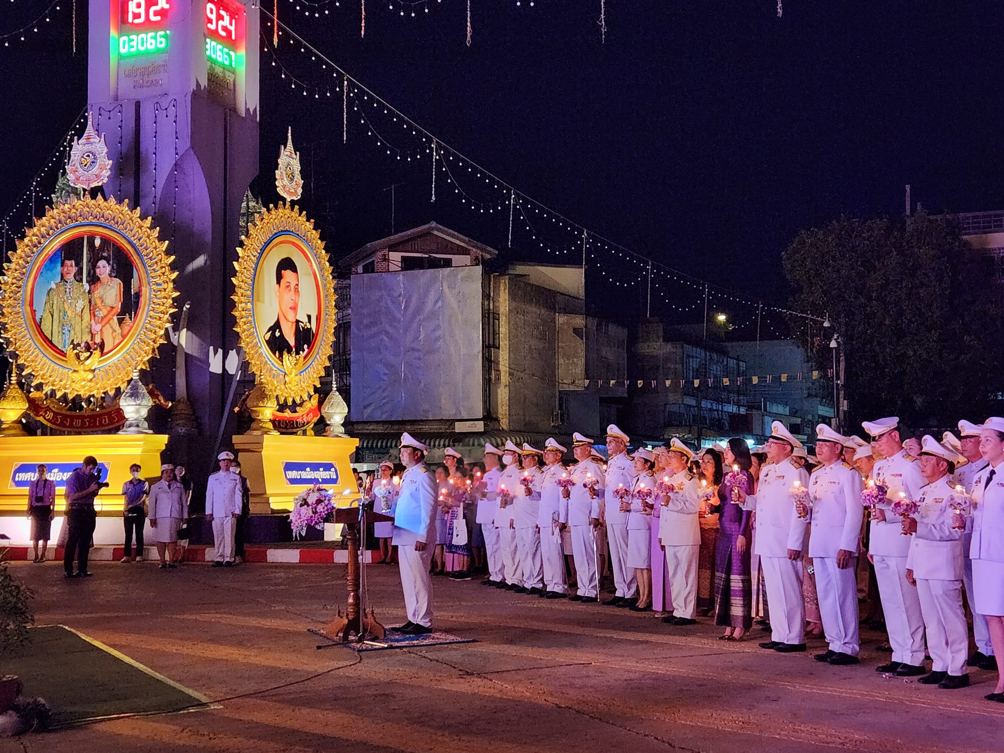 นายสมโภช โอทาตะ ผู้อำนวยการแขวงทางหลวงอุทัยธานี มอบหมายให้ นายศุภกร วิษณุพรรณ และนางสาวดารารัตน์ วาศยศ เข้าร่วมพิธีถวายเครื่องราชสักการะและวางพานพุ่ม และพิธีจุดเทียนถวายพระพรชัยมงคล ณ บริเวณวงเวียนหอนาฬิกา อำเภอเมืองอุทัยธานี จังหวัดอุทัยธานี