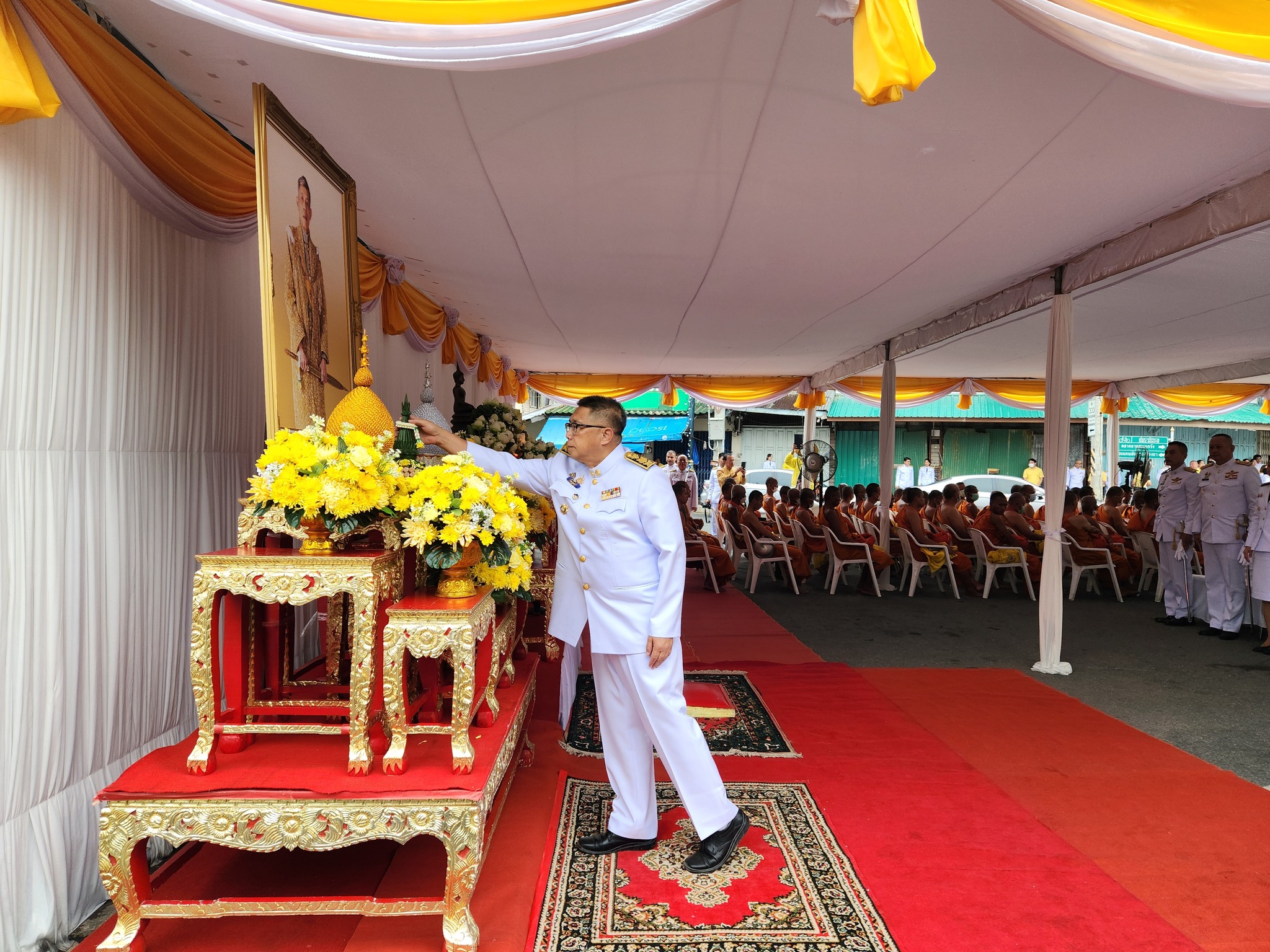 นายสมโภช โอทาตะ ผู้อำนวยการแขวงทางหลวงอุทัยธานี เข้าร่วมพิธีเจริญพระพุทธมนต์และทำบุญตักบาตรถวายพระราชกุศล เนื่องในโอกาสพระราชพิธีมหามงคลเฉลิมพระชนมพรรษา 6 รอบ 28 กรกฎาคม 2567 ณ บริเวณห้าแยกวงเวียนวิทยุ อำเภอเมืองอุทัยธานี จังหวัดอุทัยธานี
