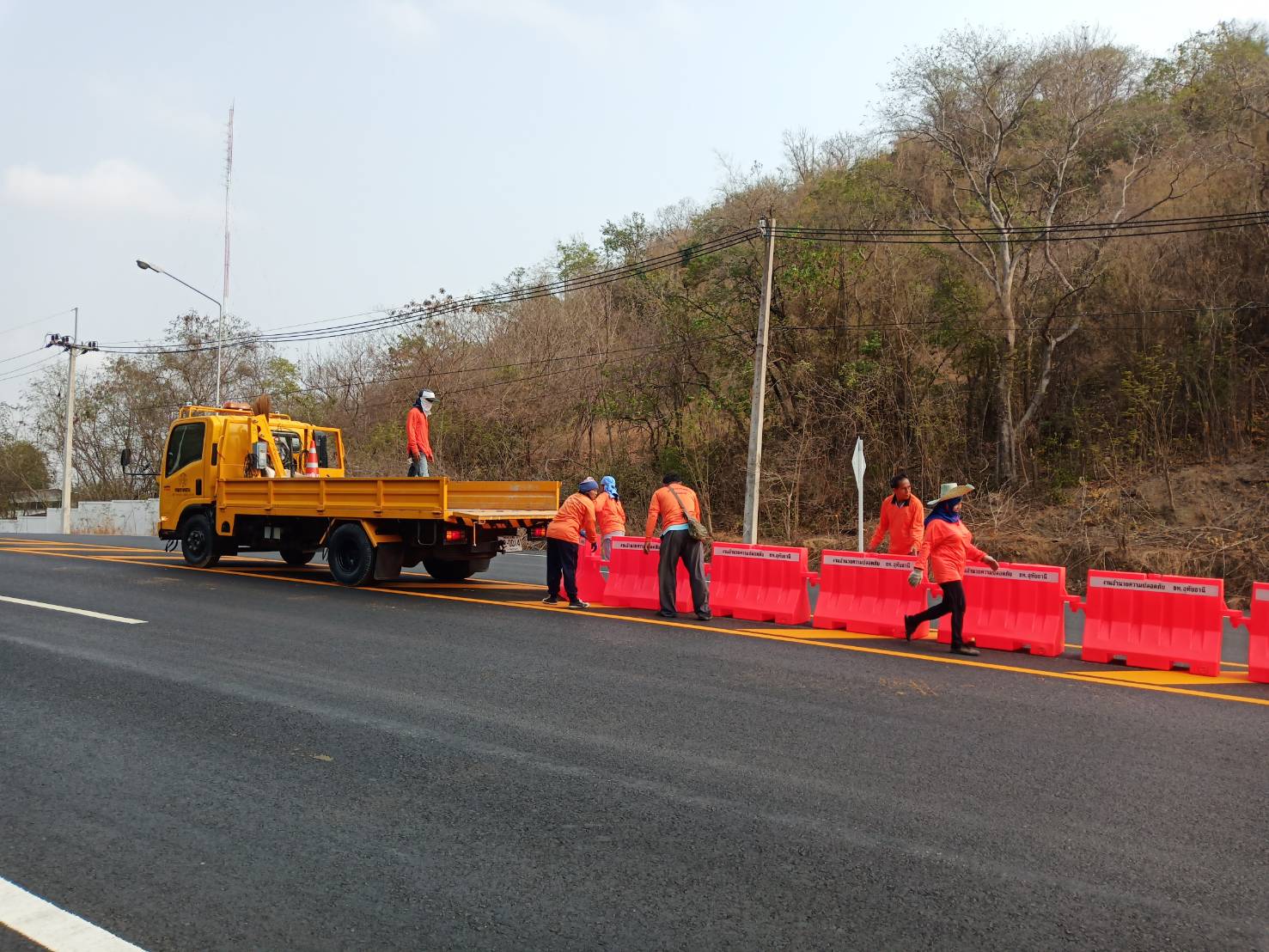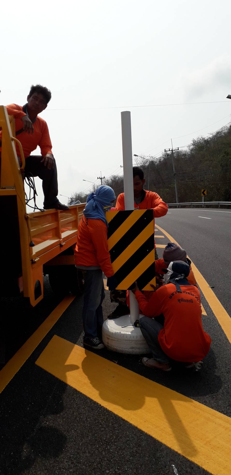 ข้อมูลภาพกิจกรรม : งานติดตั้งแบริเออร์และป้ายจราจรกระพริบพลังงานแสงอาทิตย์