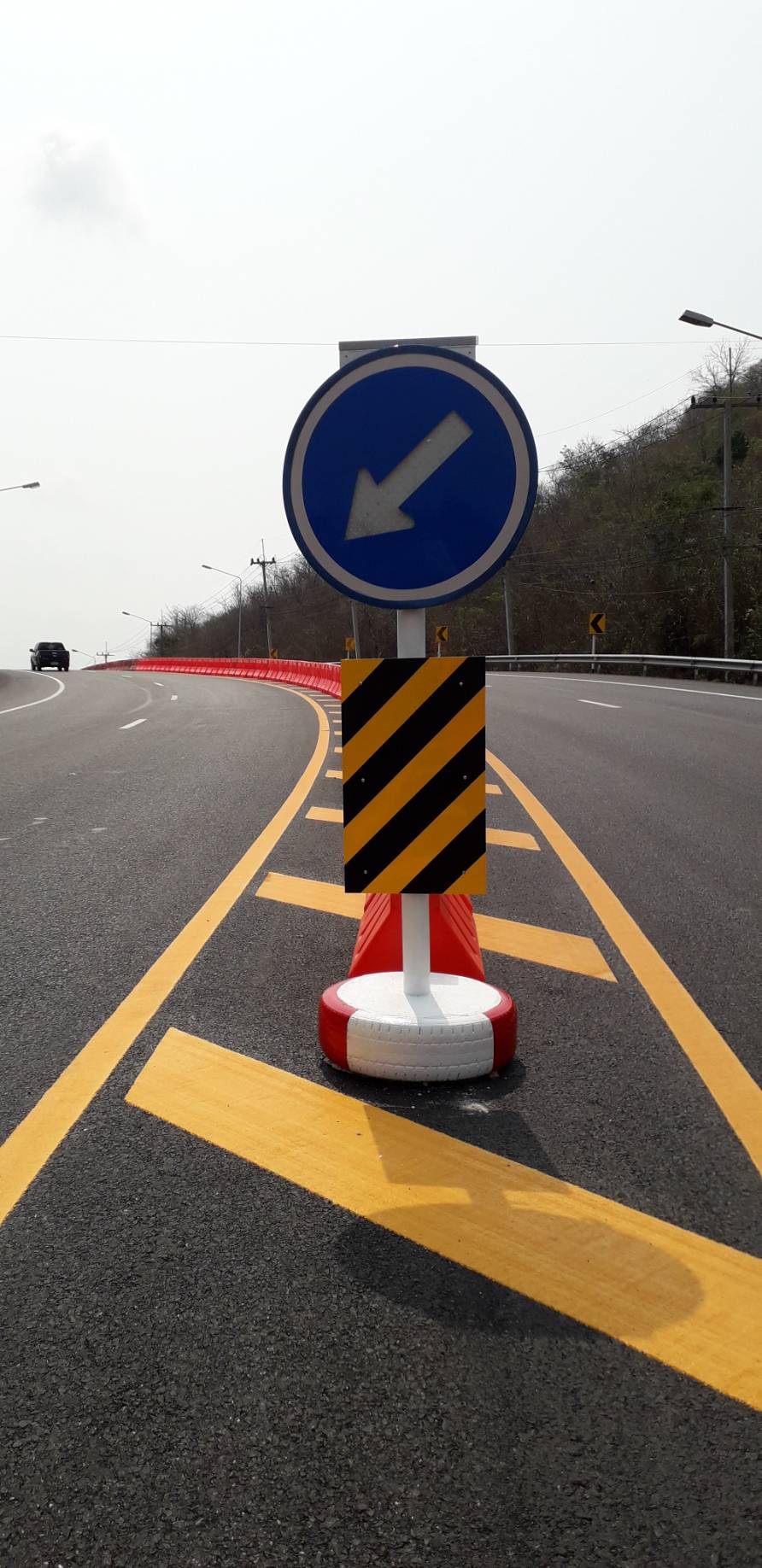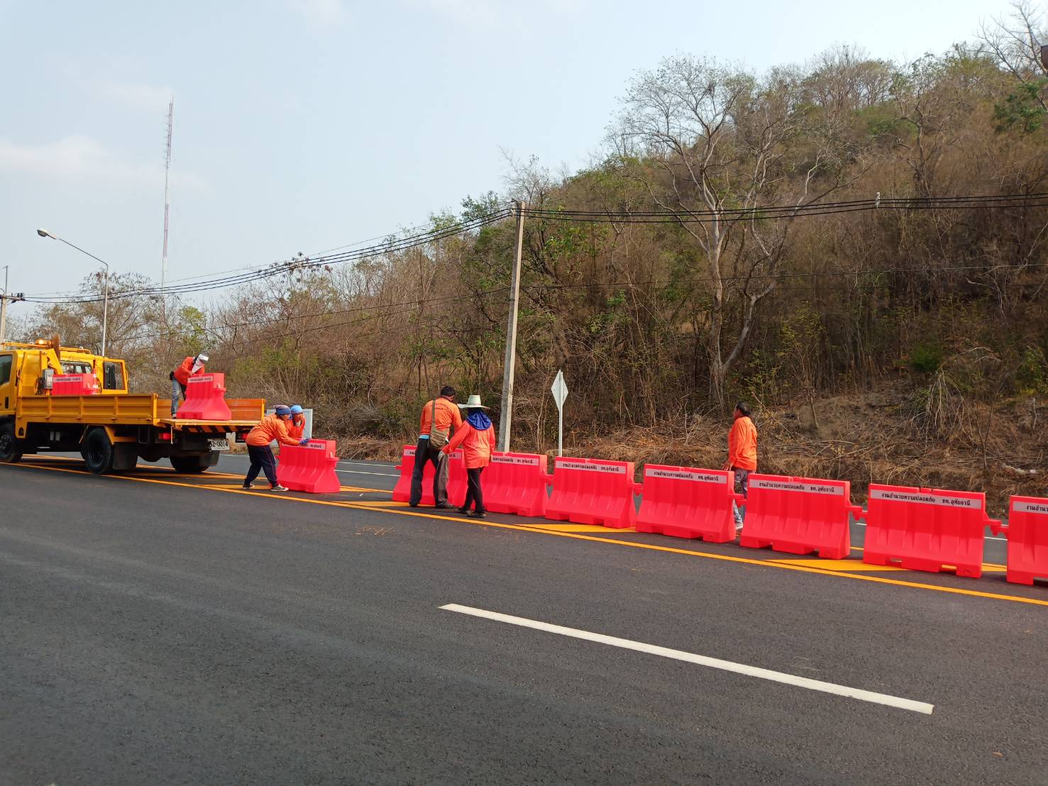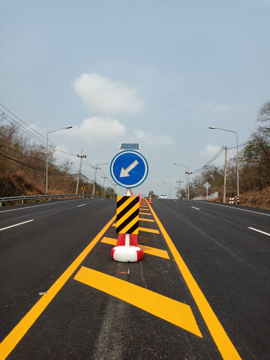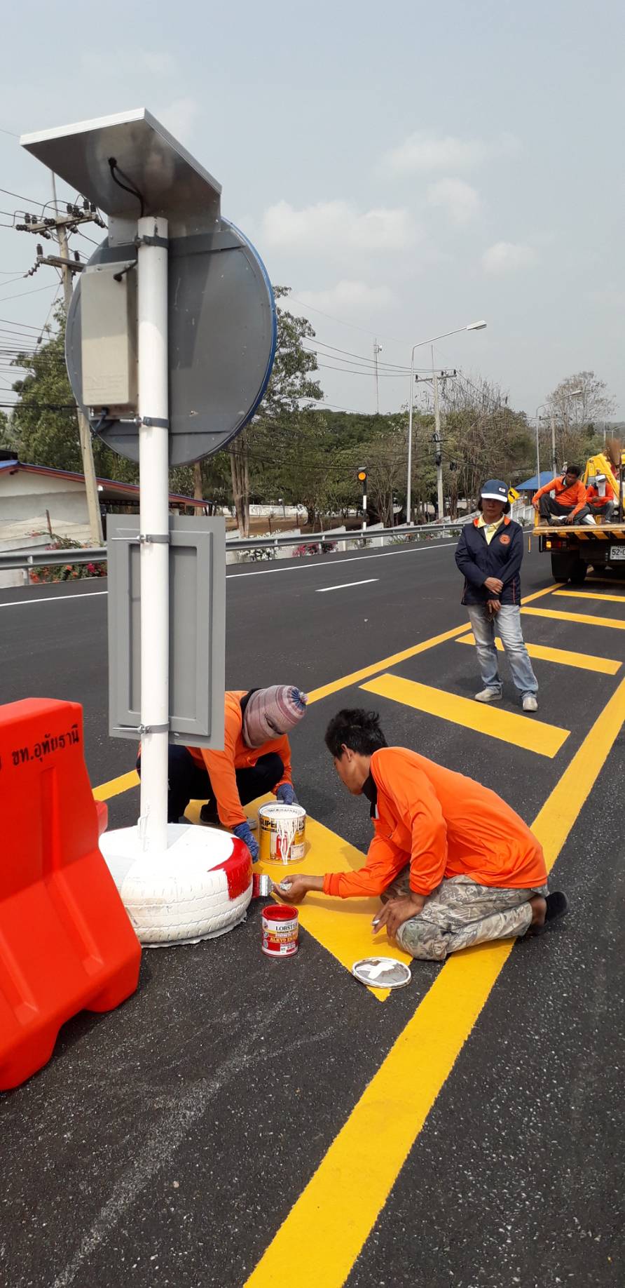 งานติดตั้งแบริเออร์และป้ายจราจรกระพริบพลังงานแสงอาทิตย์
