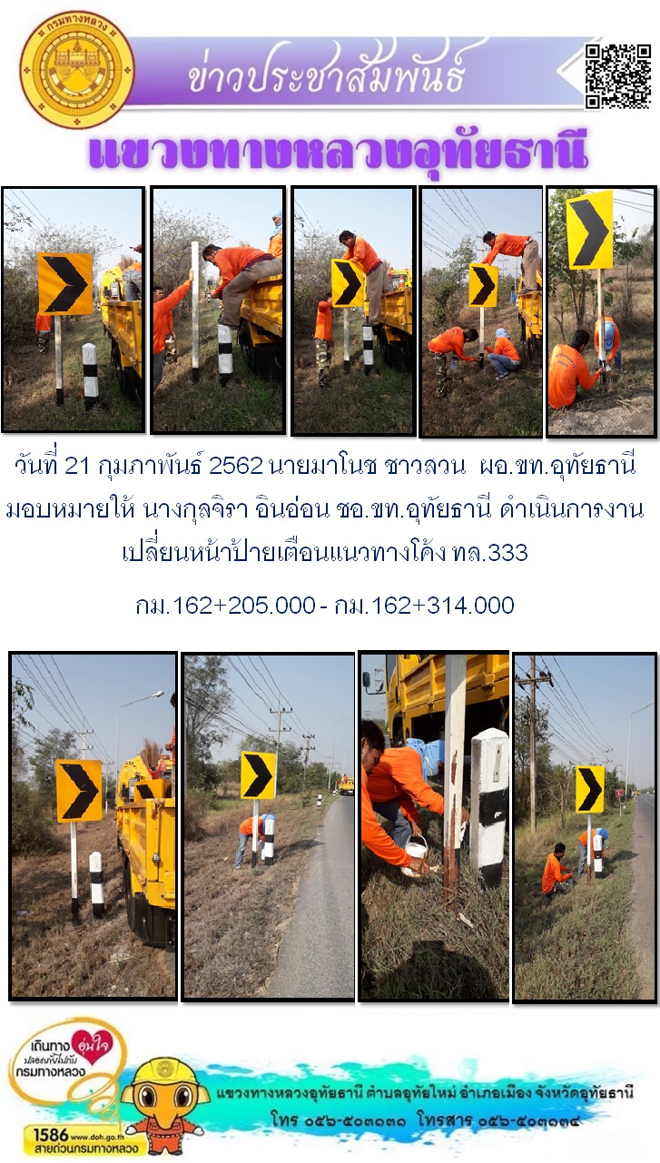 ข้อมูลภาพกิจกรรม : งานเปลี่ยนหน้าป้ายเตือนแนวทางโค้ง ทล.333 กม.162+205.000 - กม.162+314.000