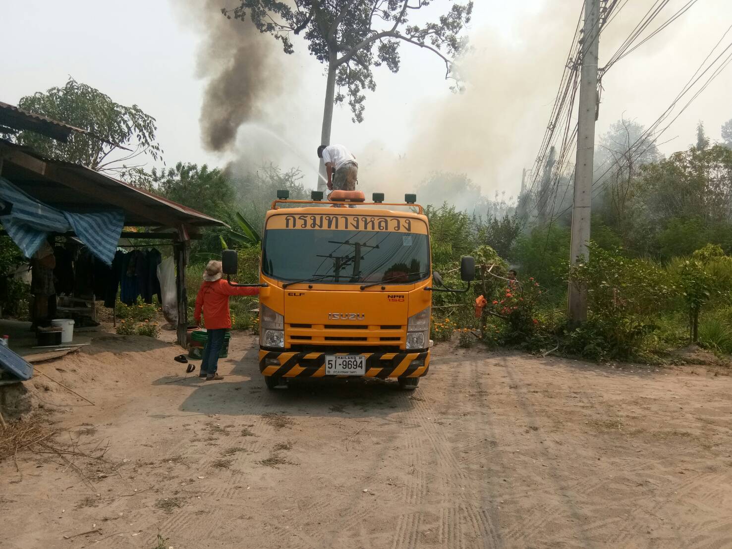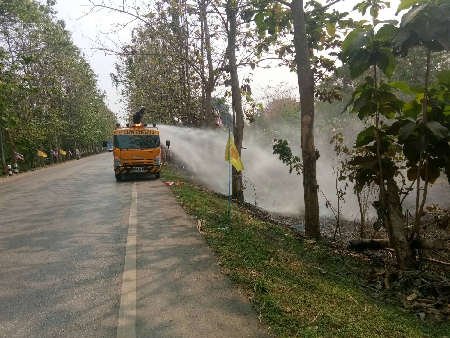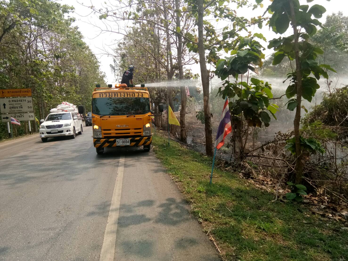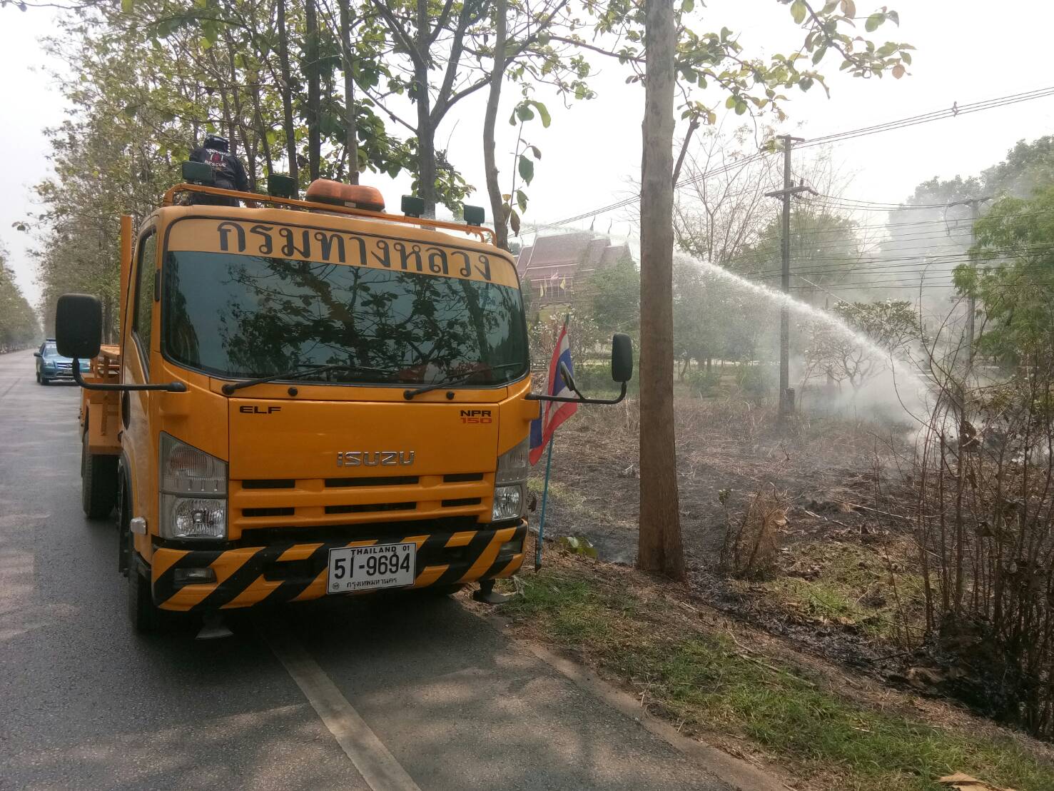 ดับไฟไหม้ข้างทาง บนทางหลวงหมายเลข 3438 ตอน ดินแดง - ไผ่งาม จำนวน 2 จุด จุดที่ 1ช่วงระหว่าง กม.25+900 - 26+200 ด้านซ้ายทาง จุดที่2 ช่วง กม.35+000 - 35+300 ด้านขวาทาง