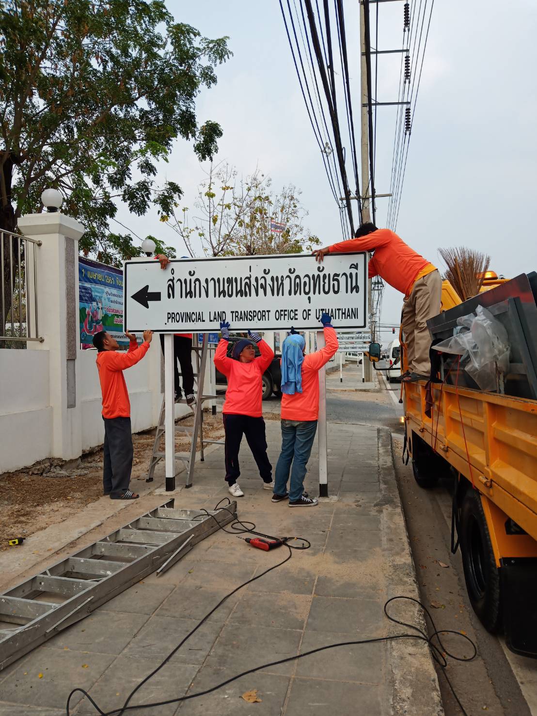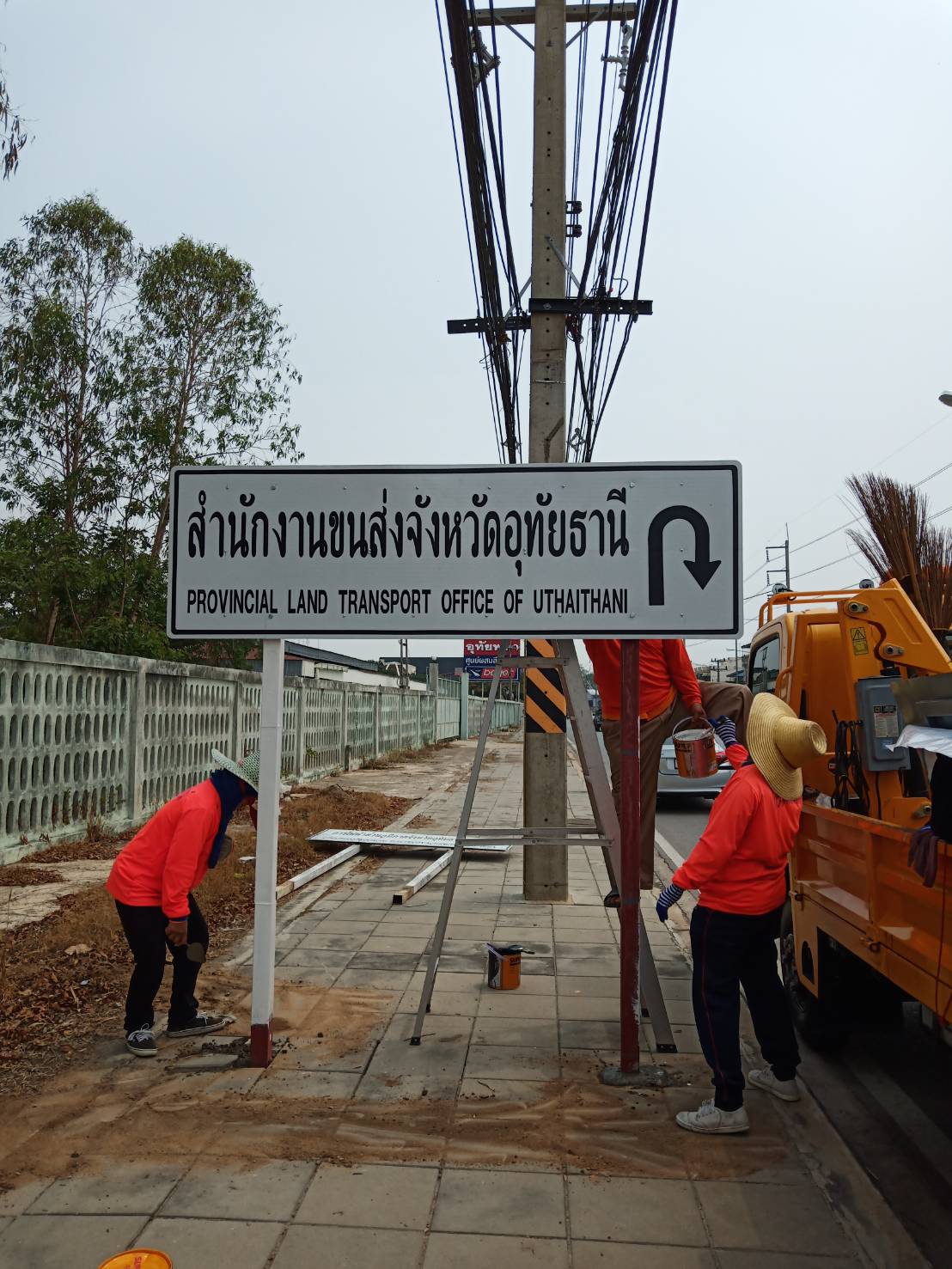 ข้อมูลภาพกิจกรรม : งานติดตั้งป้ายแนะนำเส้นทาง สนง.ขนส่งจังหวัดอุทัยธานี