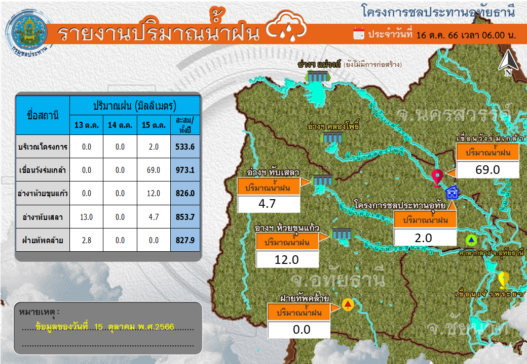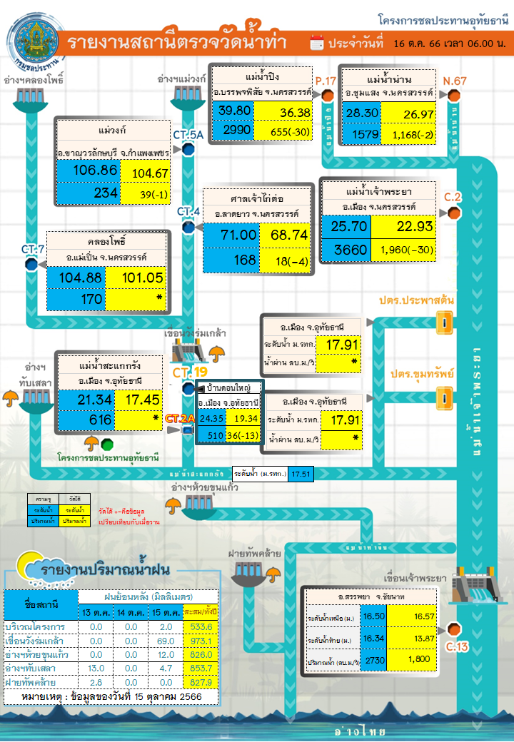 ขอรายงานสถานการณ์น้ำท่า วันที่ 16 ตุลาคม 2566 เวลา 06.00 น.